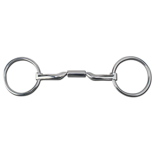 Myler Low Port Comfort bit in a Loose Ring with MB 04 mouthpiece. Myler Level 2 bit is polished stainless steel. Copper inlay mouth helps encourage salivation for a softer mouth. The 3″ loose rings allow for less interference since the rings slide around the bit with less leverage. Center barrel will rotate on the tongue and is wide enough to apply distributed tongue pressure. The low port allows the horse to swallow when he relaxes and moves forward. Bars of the bit are curved to wrap the bars and lips of the horse’s mouth without pinching. Independent side movement to assist rider with more precise cueing when balancing, bending, or lifting a shoulder.