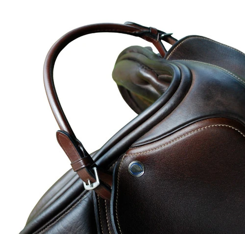 Red Barn Pommel Strap with buckles is an English saddle grab strap that adds an extra element of safety for riders. From KL Select, this pommel strap is handcrafted with high quality English leather. It is rolled, stitched, and then the raw edges are finished smoothly for comfortable grip. The Red Barn Pommel Strap has buckle ends to attach to the front dees of an English saddle.