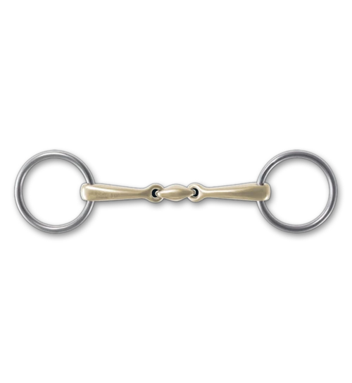 Stubben Steeltec Sweet Copper Double Jointed Loose Ring Bradoon has a mouthpiece made of Sweet Copper for salivation and responsiveness. Available in sizes: 4.75, 5, 5 1/8, 5.25, 5.5, 5.75, 6. Use this double-jointed Stubben bradoon with either of the Stubben Sweet Copper Weymouths to make sure your double bridle’s metal alloys don’t clash in your horse’s mouth. Or, you can use the Sweet Copper Bradoon on its own – the small rings are a pretty proportion on ponies and fine-headed horses.